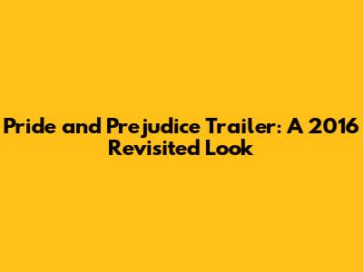 Pride And Prejudice Trailer: A 2016 Revisited Look