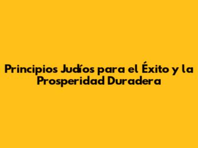 Principios Judíos Para El Éxito Y La Prosperidad Duradera