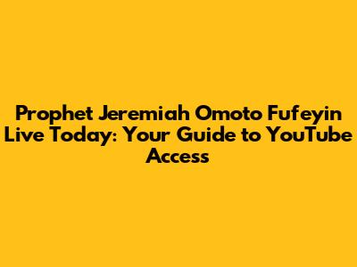 Hey everyone! Are you looking to connect with the powerful ministry of Prophet Jeremiah Omoto Fufeyin? You're in the right place! This guide is your one-stop resource for finding Prophet Fufeyin's live streams on YouTube today. We'll dive into how to watch, what to expect, and why his messages resonate with so many people. Get ready to explore the spiritual insights and dynamic worship experiences that have made Prophet Fufeyin a prominent figure in contemporary Christianity. Let's get started!