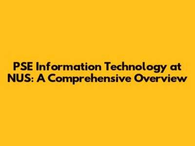 PSE Information Technology At NUS: A Comprehensive Overview
