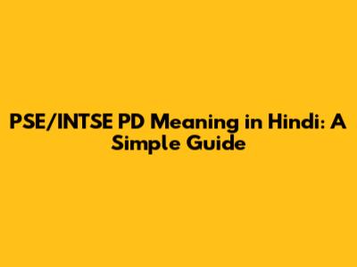 PSE/INTSE PD Meaning In Hindi: A Simple Guide