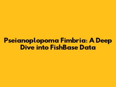 Hey guys! Ever stumbled upon a fish name that sounds like it belongs in a fantasy novel? Well, Pseianoplopoma fimbria might just be it! This article is all about unpacking everything you need to know about this fascinating fish, leveraging the extensive data available on FishBase. We'll explore its characteristics, habitat, and anything else that makes it special. So, let's dive right in!