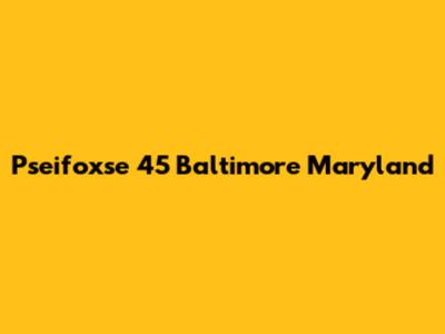 Pseifoxse 45 Baltimore Maryland: Details & Insights