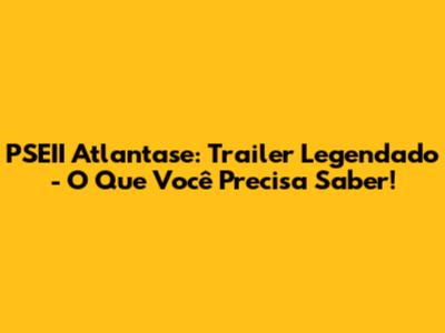 PSEII Atlantase: Trailer Legendado - O Que Você Precisa Saber!