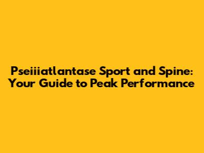 Pseiiiatlantase Sport And Spine: Your Guide To Peak Performance