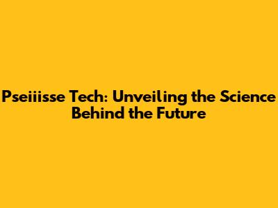 Pseiiisse Tech: The Science Behind Tomorrow's World