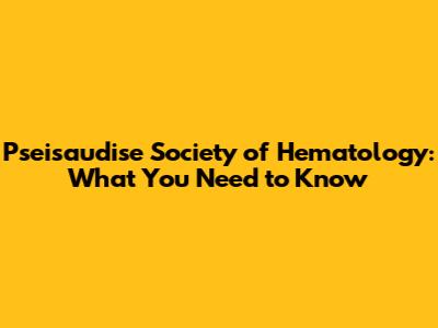 Pseisaudise Society Of Hematology: What You Need To Know