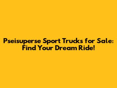 Pseisuperse Sport Trucks For Sale: Find Your Dream Ride!