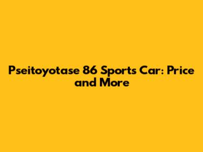Pseitoyotase 86 Sports Car: Price And More
