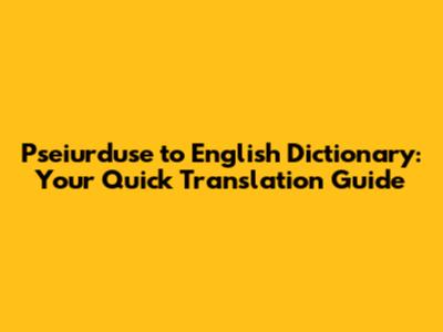 Pseiurduse To English Dictionary: Your Quick Translation Guide