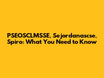 PSEOSCLMSSE, Sejordanascse, Spiro: What You Need To Know