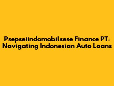Let's dive into the world of Psepseiindomobilsese Finance PT, a key player in Indonesia's automotive finance sector. Understanding the ins and outs of auto loans can be tricky, but we're here to break it down for you. Whether you're a first-time car buyer or looking to upgrade your ride, knowing the landscape of financing options is crucial. We'll explore what Psepseiindomobilsese Finance PT offers, how it operates within the Indonesian market, and provide tips for securing the best possible auto loan.