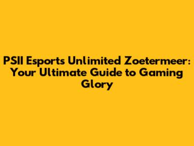 PSII Esports Unlimited In Zoetermeer: Your Guide