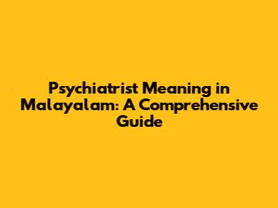 Psychiatrist Meaning In Malayalam: A Comprehensive Guide