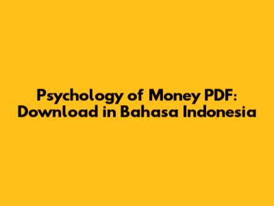 Hey guys! Are you on the hunt for the Psychology of Money PDF in Bahasa Indonesia? You've landed in the right spot! This book, penned by Morgan Housel, dives deep into the fascinating world of how we think about money and make financial decisions. It's not just about numbers and charts; it’s about the psychological quirks that drive our investment choices, spending habits, and overall relationship with wealth. So, if you're ready to understand your money mindset and make smarter financial moves, let’s get started!