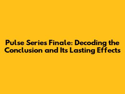 Pulse Series Ending: Unraveling The Finale And Its Impact