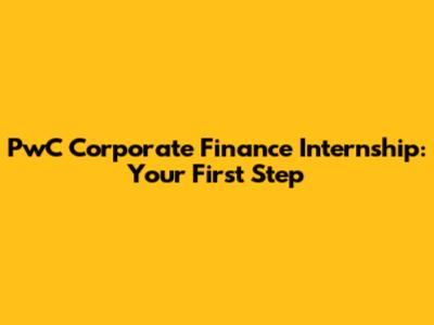 PwC Corporate Finance Internship: Your First Step