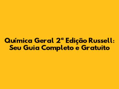 Química Geral 2ª Edição Russell: Guia Completo E Gratuito