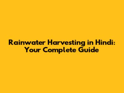 Rainwater Harvesting In Hindi: A Comprehensive Guide