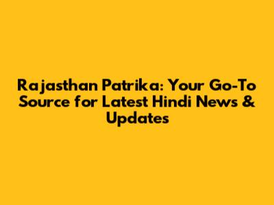 Rajasthan Patrika: Latest Hindi News & Updates