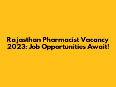 Rajasthan Pharmacist Vacancy 2023: Job Opportunities Await!
