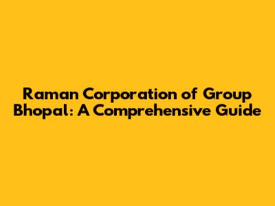 Raman Corporation Of Group Bhopal: A Comprehensive Guide
