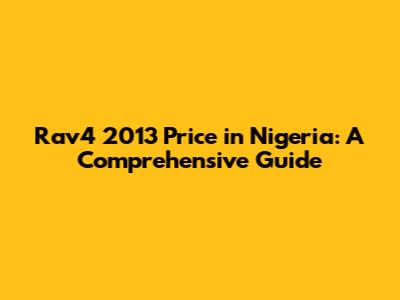 Rav4 2013 Price In Nigeria: A Comprehensive Guide