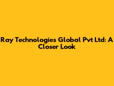 Ray Technologies Global Pvt Ltd: A Closer Look