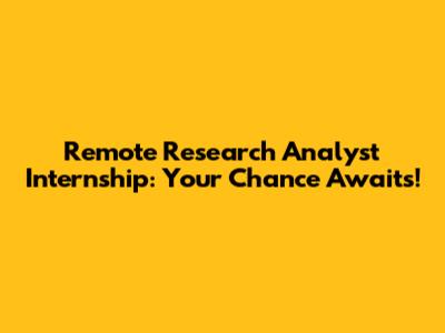 Remote Research Analyst Internship: Your Chance Awaits!