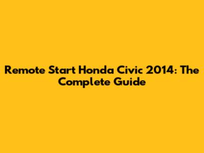 Remote Start Honda Civic 2014: The Complete Guide