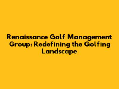 Renaissance Golf Management Group: Elevating Your Golf Experience