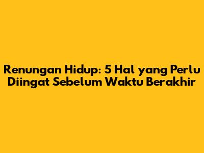 Renungan Hidup: 5 Hal Yang Perlu Diingat Sebelum Waktu Berakhir