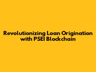 Revolutionizing Loan Origination With PSEI Blockchain