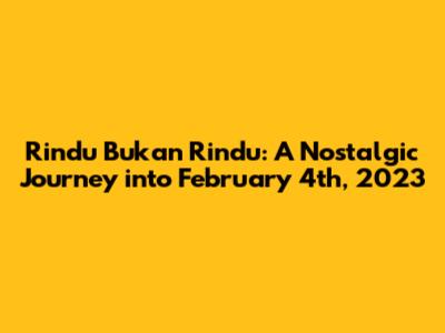 Hey guys! Let's take a trip down memory lane and revisit Rindu Bukan Rindu from February 4th, 2023. This date holds a special place, and we're going to dive deep into what made it so memorable. We'll explore the nuances of the day, reflecting on the emotions and experiences that shaped it. Get ready to reminisce, because we're about to unpack the essence of that day. Was it a day of joy, introspection, or something else entirely? Let's find out together as we journey back in time.