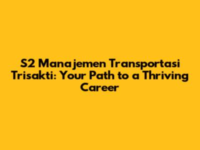 S2 Manajemen Transportasi Trisakti: Your Path To A Thriving Career