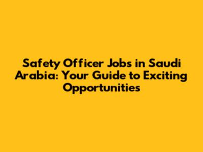 Safety Officer Jobs In Saudi Arabia