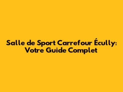 Salle De Sport Carrefour Écully: Votre Guide Complet
