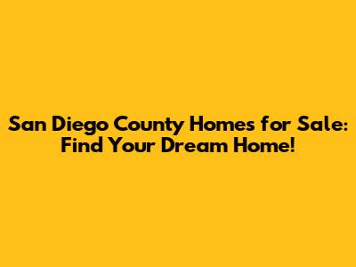 San Diego County Homes For Sale: Find Your Dream Home!