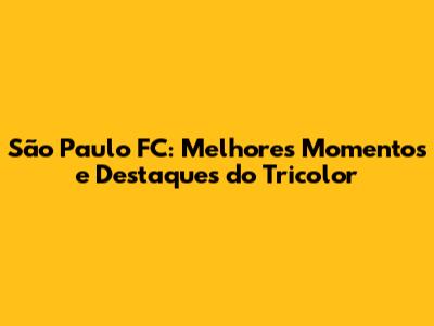 Os Destaques Recentes do São Paulo: Uma Análise Detalhada