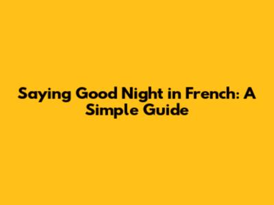 Saying 'Good Night' In French: A Simple Guide