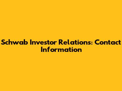 Schwab Investor Relations: Contact Information