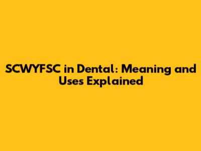 SCWYFSC In Dental: Meaning And Uses Explained