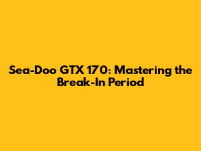 Sea-Doo GTX 170: Mastering The Break-In Period