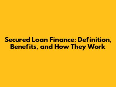 Secured Loan Finance: Definition, Benefits, And How They Work