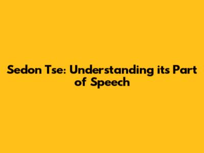 Sedon Tse: Understanding Its Part Of Speech