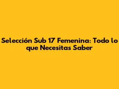 Selección Sub 17 Femenina: Todo Lo Que Necesitas Saber