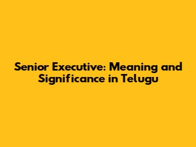 Senior Executive: Meaning, Roles, And Career In Telugu