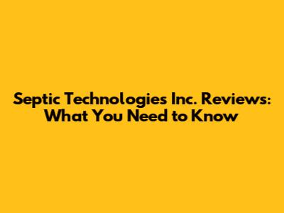 Septic Technologies Inc. Reviews: What You Need To Know