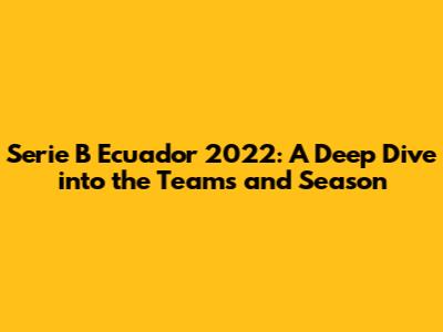 Hey there, soccer fanatics! Ready to dive into the exciting world of Ecuadorian football? Let's zoom in on Serie B Ecuador 2022, a season filled with thrilling matches, rising stars, and intense competition. This guide will provide you with a comprehensive look at the teams that battled it out, their performances, and a bit of analysis to keep you in the know. So, grab your snacks, settle in, and let's explore the ins and outs of Serie B in Ecuador during the 2022 season.