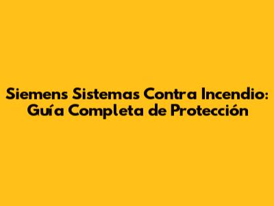 Siemens Sistemas Contra Incendio: Guía Completa De Protección